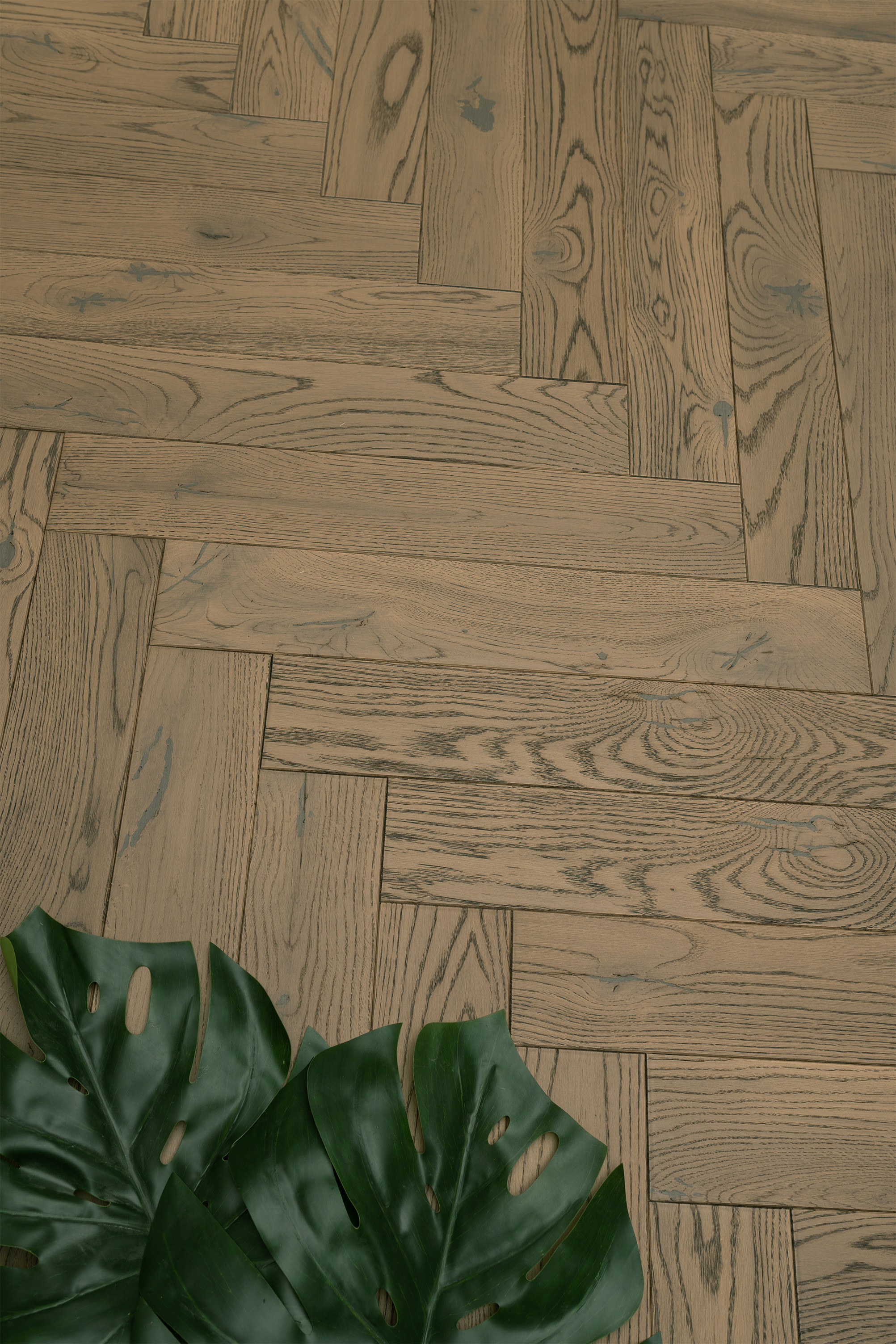 Инженерный паркет Английская елка из дуба с 4-сторонней фаской. Нейтральный оттенок пола станет хорошей основой для любого интерьера.