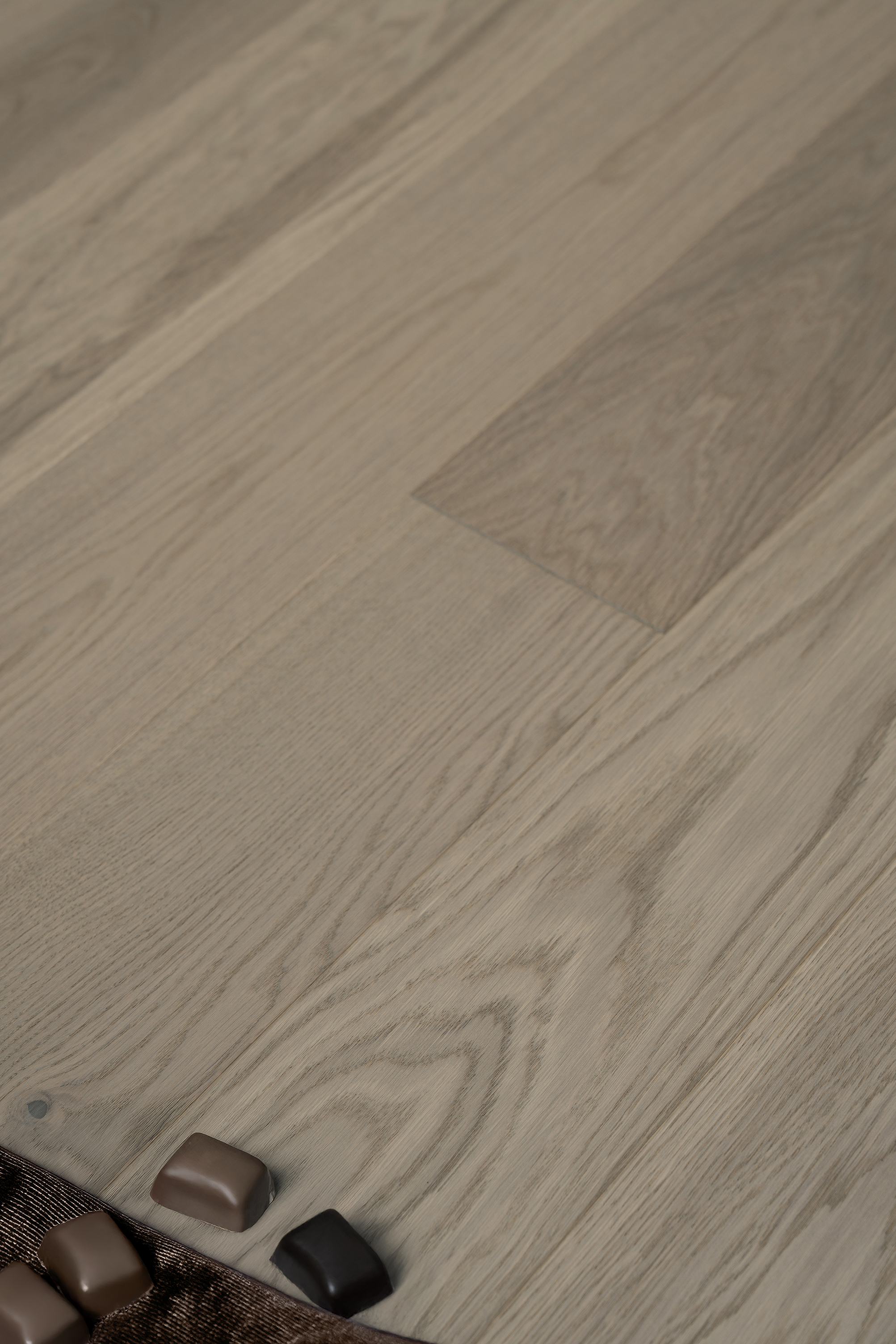 Паркетная доска — воплощение шоколадного бархата: цвет легкого какао с благородным матовым оттенком. Поверхность будто переливается мягким светом, даря интерьеру не просто насыщенность, а роскошную, обволакивающую нежность дорогого десерта.
