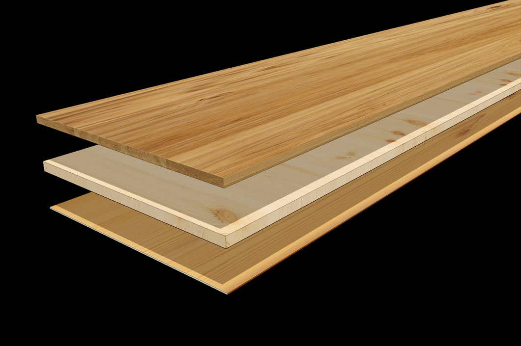- Средний стабилизирующий слой из древесины хвойных пород с поперечным, по отношению к верхнему слою, направлением волокон
