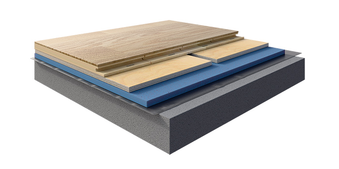 Модель разработана для помещений площадью до 200 кв. м и сочетает необходимую функциональность с доступностью. Конструкция включает три ключевых слоя: эластичную подложку, стабилизирующую фаневую панель и износостойкую паркетную доску.