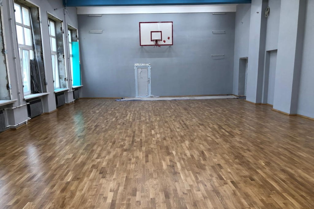 Для проекта в Лицее №214 в Санкт-Петербурге была выбрана система спортивных полов Karelia Sport Floor. Это покрытие разработано для залов с высокой нагрузкой — оно сочетает упругость, устойчивость к износу и безопасную поверхность.