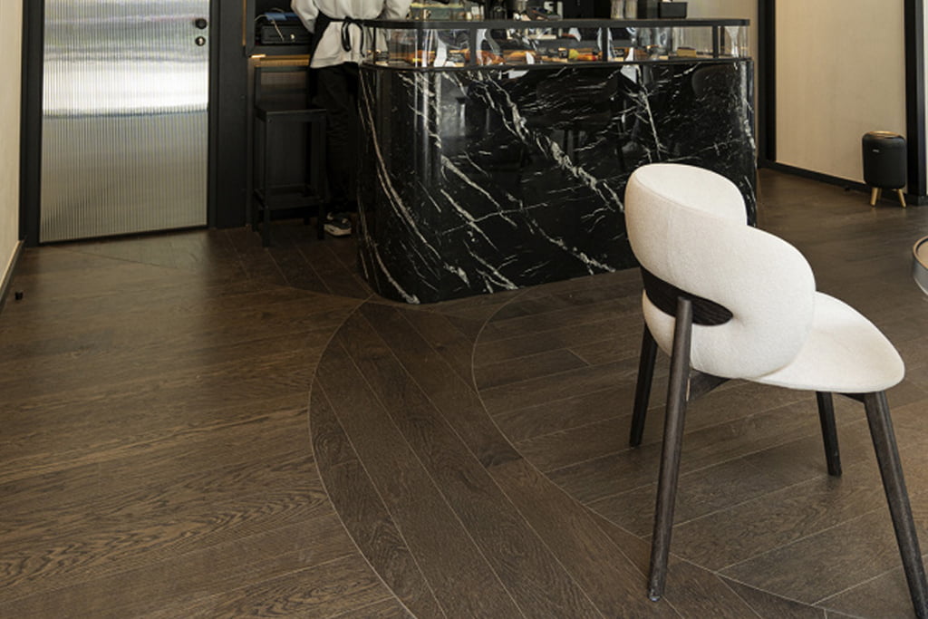 В проекте жилого комплекса «Симфония» мы реализовали интерьер с акцентом на натуральные материалы и благородные текстуры. Для напольного покрытия была выбрана эксклюзивная паркетная доска Karelia Oak Story 138 Symphony — гармоничное сочетание природной красоты дуба и современного дизайна.